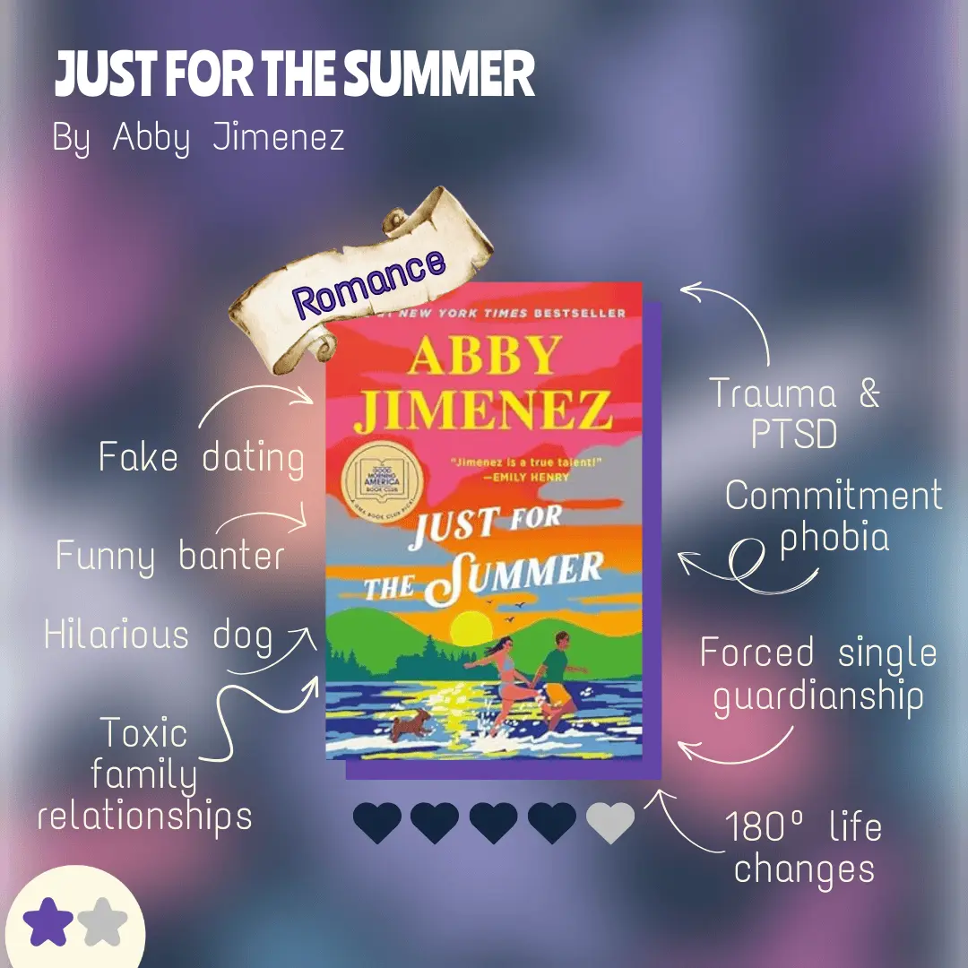 Abby Jimenez has this capacity of bringing to attention real struggles, diseases and situations—and this novel isn’t the exception—with humor and spark. There’s always a funny pet involved that lightens the mood in a refreshing way. This time, Emma and Justin decide to fake date to try to break their curse: their dates always end up meeting the one after they break up. However, a fling is never a fling. And, there are family complications and trauma that will add to their journey. It’s heartwarming, real and healing.